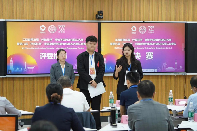 本站讯(外国语学院 供稿)10月18日,江西省第三届“外教社杯”高校学生跨文化能力大赛暨第八届“外教社杯”全国高校学生跨文化能力大赛(江西赛区)在江西农业大学举行。我校23级翻译专业彭思奕、23级中文教育专业彭雅芯、24级临床医学专业周煜丰组成的参赛团队,凭借出色表现先以复赛小组第一晋级决赛,最终斩获全省二等奖,充分彰显了我校学子优秀的跨文化素养与广阔的国际视野。