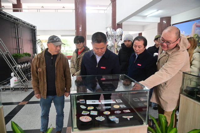本站讯(记者 袁璐)为深入挖掘校园文化内涵,展现校园文化建设成果,激发师生文化创新活力,12月22日,由党委宣传部、美术与书法学院联合主办的“宜人 宜创 宜韵”——宜春学院校园文化建设主题文创展在主教楼一楼中厅正式启幕。当天上午,校党委副书记、校长蔡海生,校党委委员、副校长李建军来到现场观展,并与参展师生亲切交流。