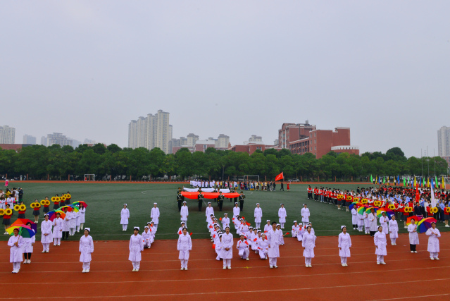 激昂的《运动员进行曲》奏响,国旗护卫队队员身着笔挺制服,以铿锵步伐护送五星红旗入场,鲜红旗帜猎猎飘扬,尽显青年学子的蓬勃朝气。紧随其后的会旗队,手举象征公平团结的校运会会旗,传递着“更快、更高、更强、更团结”的奥林匹克格言。鲜花队手捧缤纷花束,步履轻快充满活力;彩旗队挥舞五彩旗帜,似流动彩虹,将赛场氛围渲染得热烈非凡。