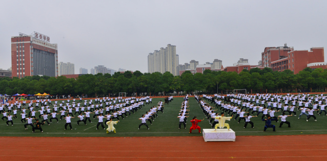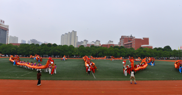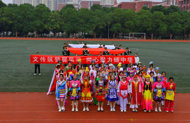 随后,精彩的文体表演轮番上演。首先,舞龙表演震撼开场,长龙腾空而起,龙身蜿蜒起伏,翻滚腾跃,充满着灵动与力量;万载傩舞沉淀着岁月的痕迹,古朴中透着雄浑,神秘里藏着对生活的热忱,尽显中华传统民俗文化的魅力。紧接着,组合舞蹈表演《掌扇风云》将武术与国标舞相融,兼具刚硬与柔美的舞姿引来现场阵阵喝彩。随后,八段锦缓缓展开,白衣学子凝神聚气,伸臂按掌流畅连贯,为赛场增添了一份宁静与和谐。
