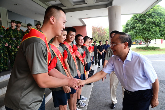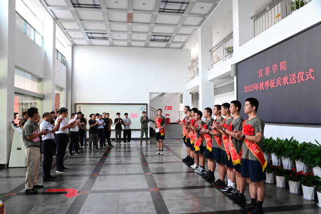 本报讯(校人民武装部 供稿)金秋送爽,丹桂飘香。9月11日上午,我校2025年秋季征兵欢送仪式在行政办公楼举行。一批经过严格选拔的优秀青年,身着崭新戎装,胸戴鲜艳红花,精神抖擞、意气风发,即将告别校园,奔赴军营,开启保家卫国的光荣征程。校党委书记李国金,校党委委员、副校长邱家明,校人民武装部部长周卫平、各院党委书记、教师代表、学生代表参加了欢送活动,欢送仪式由邱家明主持。