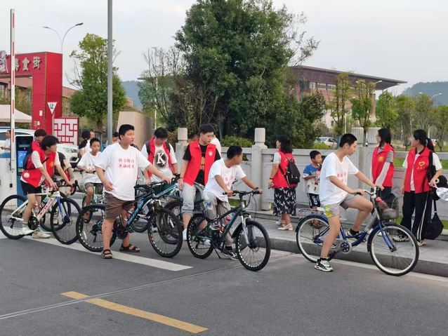志愿者和孩子们快乐骑行