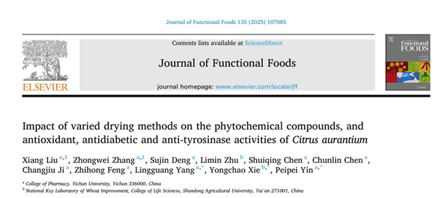 本站讯(药学院 供稿)近日,宜春学院药学院杨灵光、尹培培课题组与山东农业大学“泰山学者”解永超副教授合作,在国际知名期刊《Journal of Functional Foods》(中科院二区,IF=4.0)发表题为《Impact of varied drying methods on the phytochemical compounds, and antioxidant, antidiabetic and anti-tyrosinase activities of Citrus aurantium》的研究论文,为酸橙在功能食品与药物开发中的高值化利用提供重要科学支撑。