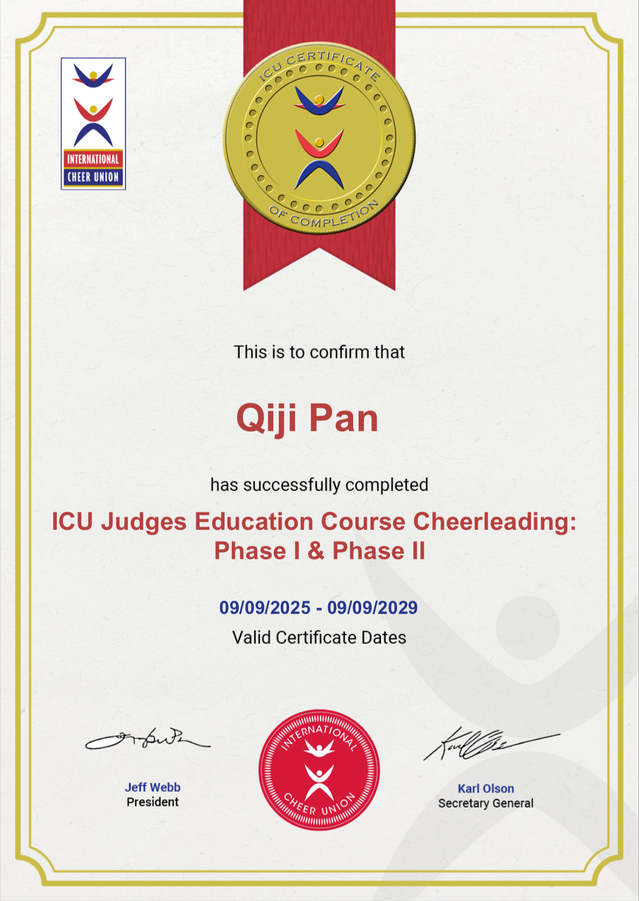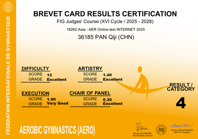 国际体操联合会(FIG)认证的健美操国际级裁判资质,是该领域全球公认的最高裁判认证,考试涵盖最新国际评分规则解读、高难度动作判罚标准、赛事执裁技巧等核心模块,对考生的专业深度、临场反应及国际视野均有严苛要求。潘芑骥老师在备考期间,不仅系统梳理了近三年国际赛事视频,还通过线上模拟执裁、与资深裁判交流等方式打磨技能,最终以优异成绩通过考核。