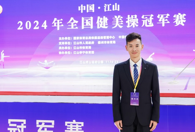 本站讯(体育学院 供稿)近日,宜春学院体育学院传来重磅喜讯:经过国家体育总局体操运动管理中心严格选拔与系统培训,并经过国际体操联合会(FIG)严格规范的线上考试,青年教师潘芑骥博士成功晋升为健美操国际级裁判。值得关注的是,就在今年8月,他已在新加坡顺利通过啦啦操国际级裁判员认证——短短数月内,潘芑骥老师一举拿下两项国际顶级裁判资质,成为宜春学院首位拥有双国际级裁判等级的教师。