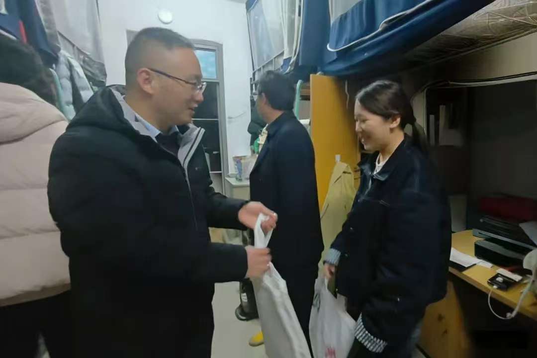 17日晚,夜色渐浓,“药宜红”青年先锋队的身影穿梭在大四备考学子的寝室楼里。由学院领导带队,辅导员、专业负责人及研究生与本科生代表们组成“助力团”,带着这份“专属温暖”逐一敲门问候。“最近复习强度大,别熬太狠,睡前把香囊挂在床头,能帮你放松”“遇到知识点瓶颈别慌,按节奏梳理,我们都在”,老师们拉着学子的手细细叮嘱,话语朴实却句句戳中人心,细致询问备考进度与心理状态的同时,更送上了“合理规划作息、保持平稳心态”的贴心建议。