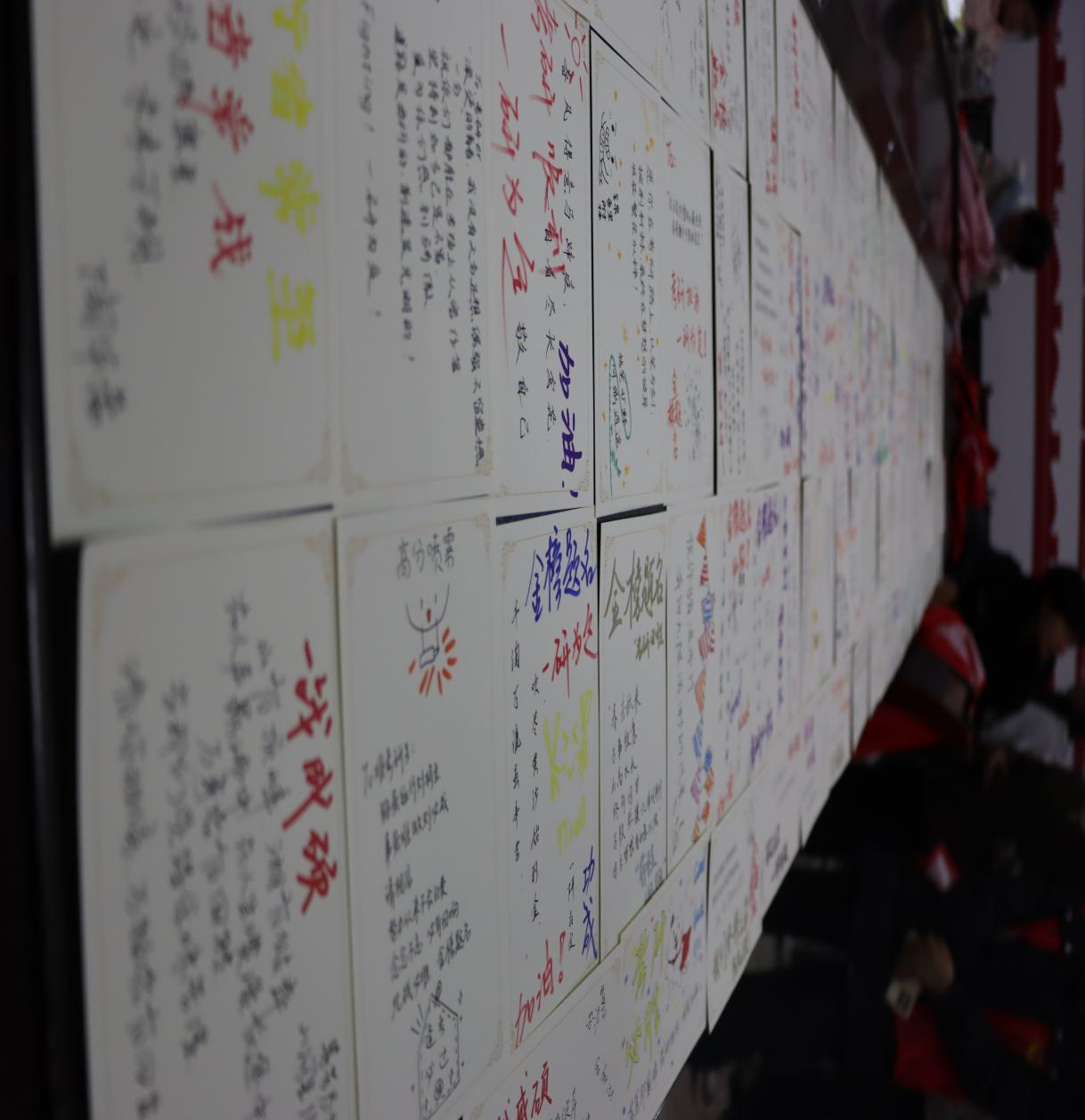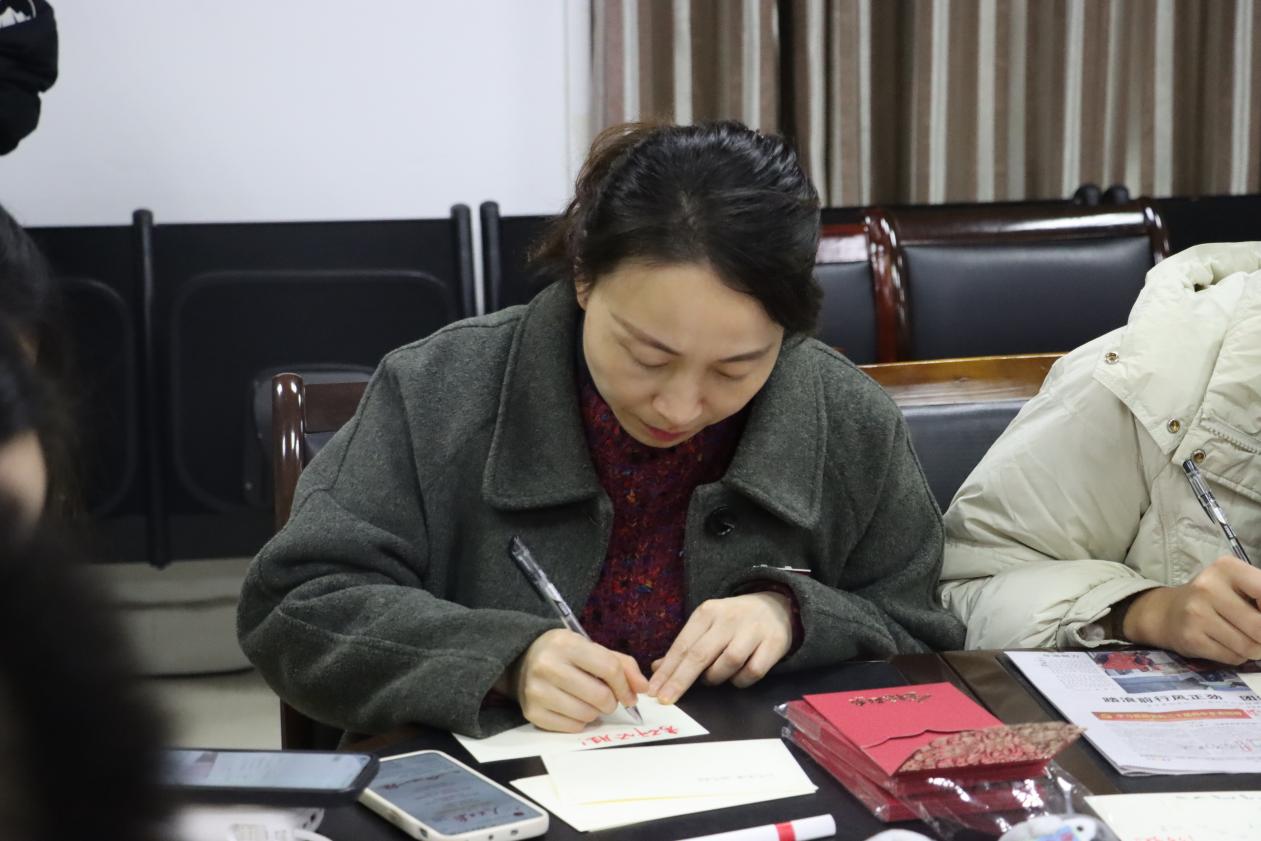 桌案另一侧,笔墨飘香处更见温情。大家纷纷提笔,在贺卡上写下专属祝福:有师长“愿你笔锋所至皆心之所向”的殷切期许,有同窗“并肩追梦,顶峰相见”的热血鼓励,还有研究生学长学姐“稳住节奏,你终上岸”的实战寄语。每一笔都饱含温度,每一行都藏着惦念。这些满载心意的香囊、贺卡,最终被装进师生共同设计的定制帆布袋中,沉甸甸的礼包里,装的是看得见的关怀,藏的是道不尽的温情。活动尾声,全体人员并肩合影,镜头定格下这夜的同心协力与脉脉温情。