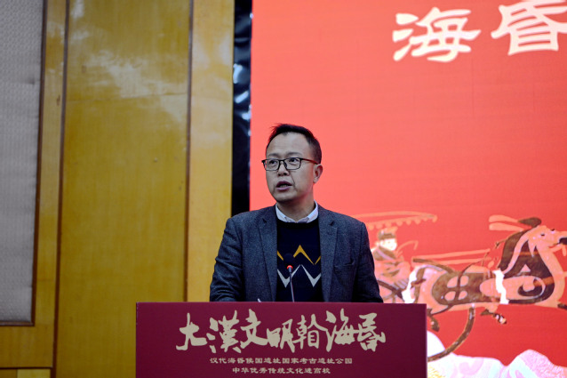 宜春学院党委委员、副校长李建军在致辞中表示,此次活动是贯彻习近平文化思想、推动传统文化创造性转化的具体实践,更是传统文化与青春校园的深度相拥。他介绍了宜春学院深耕传统文化育人、推进馆校共建的相关举措,强调学校将以此次交流为契机,深化校地联动与文旅融合,让海昏汉文化在育人沃土上绽放光彩。