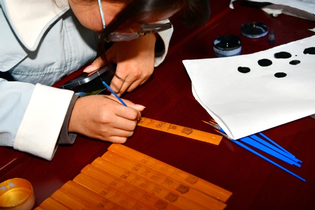 活动现场还精心布置了产品展示区和互动体验区,吸引了众多师生踊跃参与。通过竹简描金、文物拼图、拓片拓印以及赠送门票等互动环节,师生们仿佛进入了“时空隧道”,探寻着海昏侯的文脉印记,使得沉睡两千年的文明重新焕发出活力。这些活动有效地将课堂教育拓展到遗址现场,促进了文化教育的深度融合。
